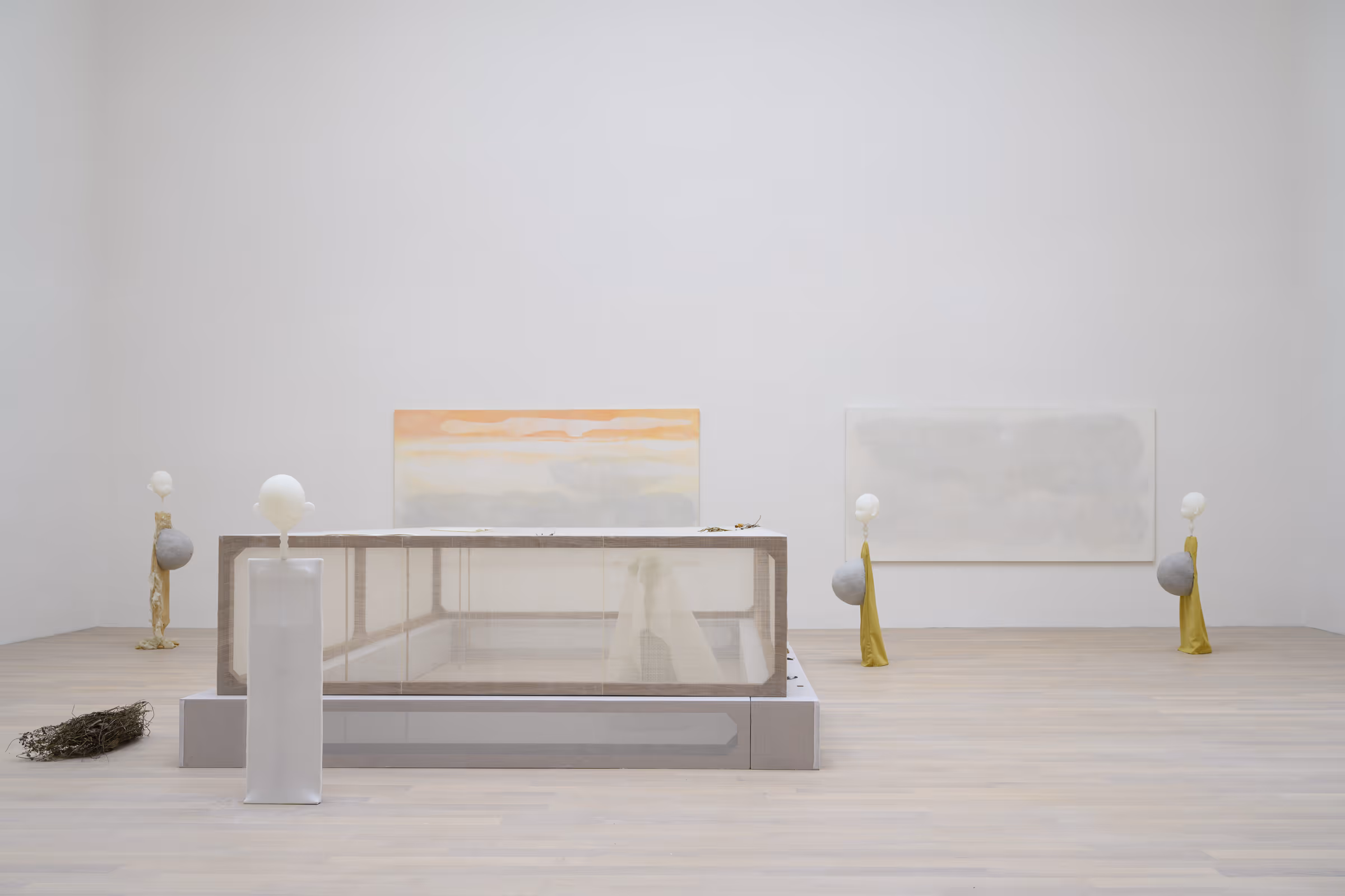 Through the measured process of creating her works, Wilkes experiments with all kinds of media and materials, and collects treasures and ingredients. Production-or what we see in the end is the accumulation of all of these constituent parts. Her work recalls inchoate visions of interiors and places of loss and meditates on the nature of love and the coexistence of life and death. Her work also shows the disappearance and dematerialisation of life and the absence and anonymity of the author. Her works, which are all Untitled, render us all non-initiates; together we have equal capacity.
