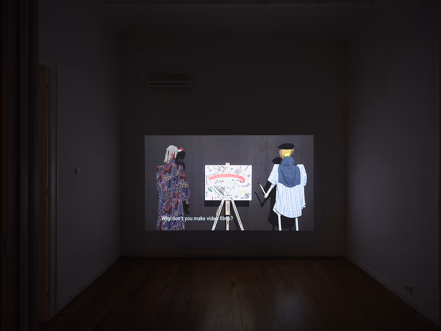 In Das Loch [The Hole], 2010 by Belgian artist duo Jos de Gruyter and Harald Thys, three puppets are swayed by the artists: the painter Johannes (1947-2010), his wife Hildegard, and their fast-car, tech-obsessed friend Fritz. The video features an abstract painting attributed to Johannes, which the artists bought from a market. In exhibitions since (Optimundus, In the Realm of the Solar Eclipse, and more) the artists have exhibited hundreds more artworks by Johannes, though actually made by them, and occasionally by other living artists.