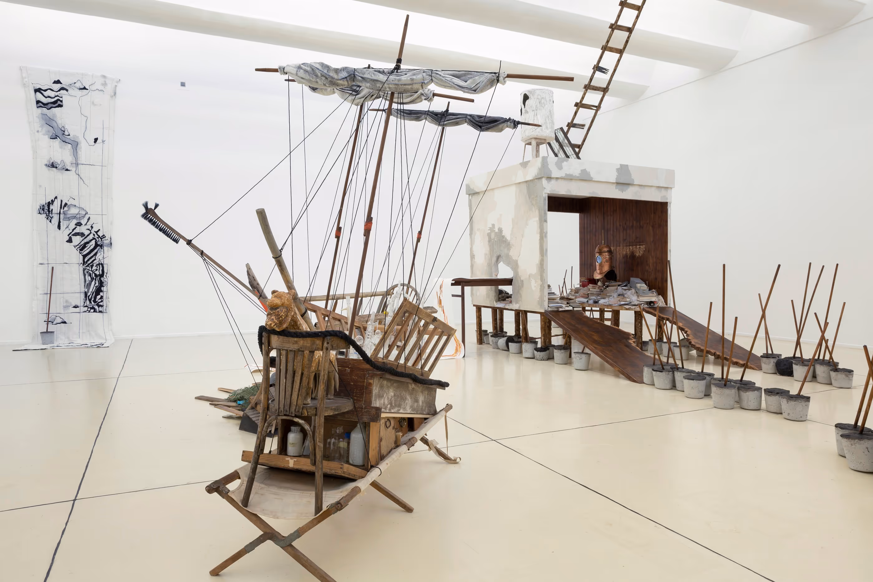 The exhibition space served as an arena for performances, meetings, and collaborations with artists and researchers from the fields of dance, music and science. The upper gallery presented an audiovisual project that accompanied this exhibition, The Mariana Trench – Flooding, a radio play and screening, the product of Alroy’s collaboration with the artist and author Moran Shoub.
