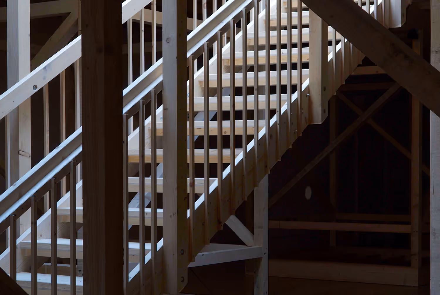 For the exhibition internationally acclaimed Brazilian artist Rivane Neuenschwander completely transformed the gallery space with a site-specific installation. Monumental in scale, yet incorporating minimalist elements including drilled holes, the residual dust and tiny perforations in every frame of a 16mm film, this major new work encompassed a number of discrete but inter-related components. Born of the artist's unique sensitivity to space, Neuenschwander's installation took as its starting point the full height of the SLG's impressive main exhibition hall, the beautiful glass ceiling lantern and the horizontal line which notionally divides the space in two. A visually elaborate but essentially simple wooden structure supported a new floor punctuated by a staircase leading visitors to the level above and an entirely fresh perspective on the upper area of the gallery. A perpetual dialogue between additive and reductive processes was established, a dialogue which permeated the exhibition, each work within it and the relationships between them. The temporary structure equally transformed the lower half of the gallery, populating it with supporting struts and obscuring the daylight which would otherwise flood the gallery. Here the floor became a ceiling, emphasising the interior nature of lower space.
