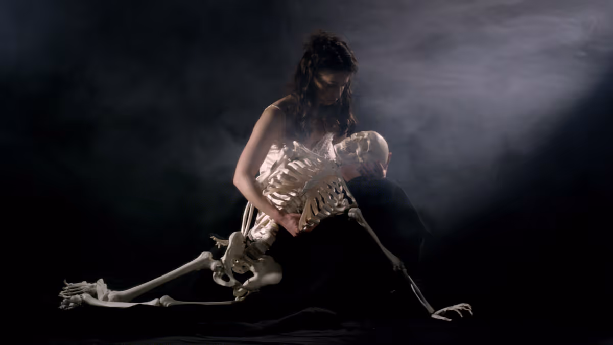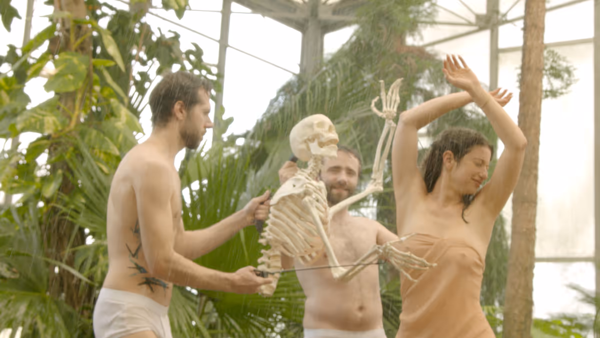 The exhibition featured two major video installations from 2015–2019, screened within sculptural environments rich with materiality. The work screened on the ground floor was Sheldon the Humanist Skeleton (2015–2016), depicting a fictitious affair between the artist, who was living in Lille, France, at the time, and a skeleton that she "discovered" in excavations in the Dead Sea area. It is an absurd love story between two foreigners in France, realised by puppeteers and the imagination—with a nod at the theatrical, cinematic and literary space. The complex and tangled reality of the refugee crisis, the Israeli–Palestinian conflict and the clash between nationalism and globalism is set out against the background of the rebirth of the humanist skeleton and the love story between Tamar and Sheldon, linking the personal-biographical with the historical, the political, the public.