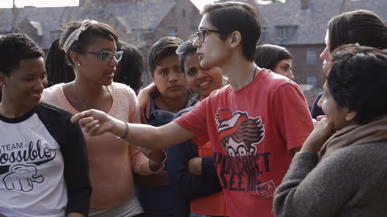Through video, performance, installation, and grassroots activism,Sharon Hayesemploys and deconstructs the tactics of political language. The artist’s video project Ricerche: three utilises the same socially engaged strategies. Based on Pier Paolo Pasolini’s 1965 cinema verité documentary Comizi d’Amore, in which the filmmaker interviews diverse segments of postwar Italian society about sexuality, Ricerche: three similarly involves intimate discussions of sexuality with friends, poets, artists, students, executives, and unemployed labourers in locations throughout the United States, from New England to the Midwest. Hayes follows Pasolini in her attention to people in groups, staging large group interviews in a way that slowly and jointly draws out each group’s collectivity and each individual’s social self. In presenting the work as a looping video account, Hayes also suggests a tension between earnest conversations and slightly fictionalised performances – all while personally navigating the efficacy and traps of language, politics, and desire.
