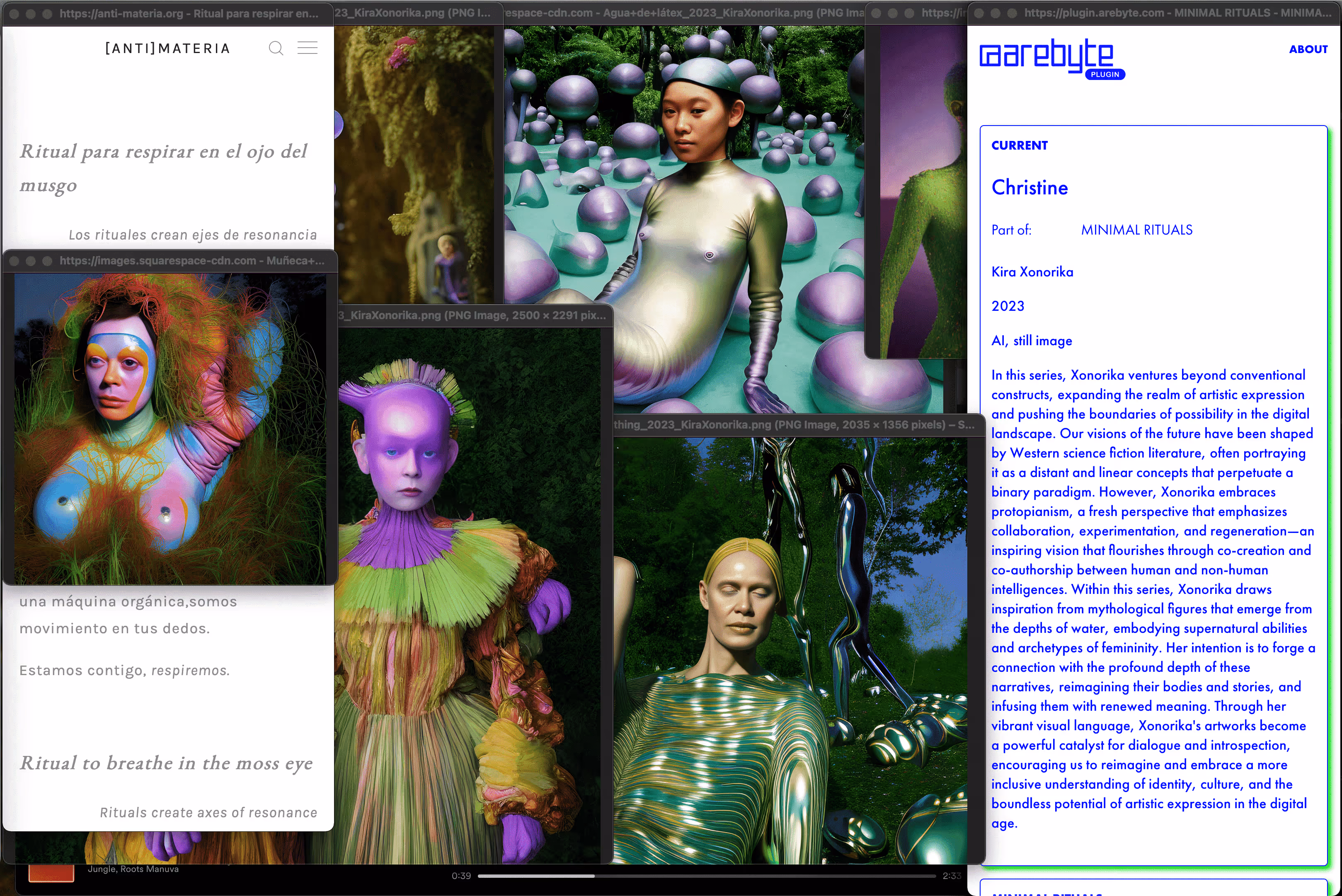 The Outset Partners Grants Programme 2023 awarded an Impact Award to arebyte Plugin, which is an innovative digital tool for experiencing online exhibitions through window pop-ups via a browser extension. In a time of information overload and growing competition for attention, the Plugin provides a progressive solution to deliver images, videos, and 3D worlds directly to the viewer's screen. This tool establishes a direct line of communication with audiences, offering enhanced access to cultural content in a more engaging fashion.