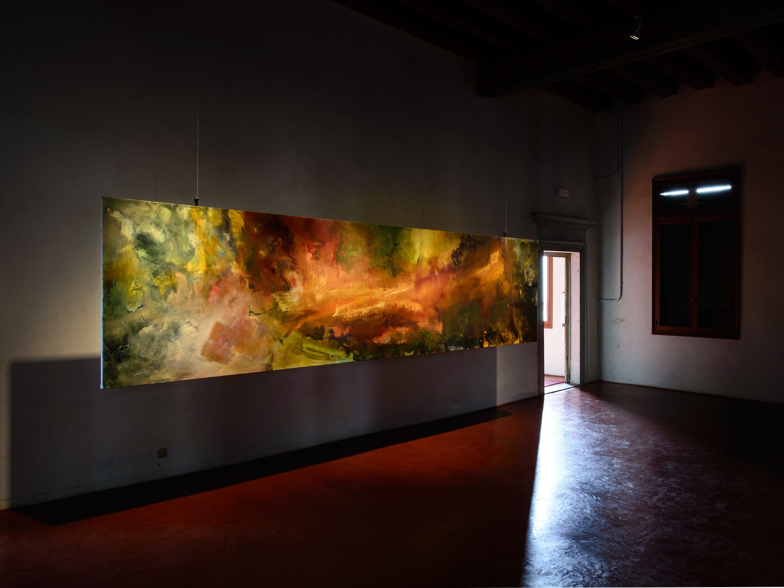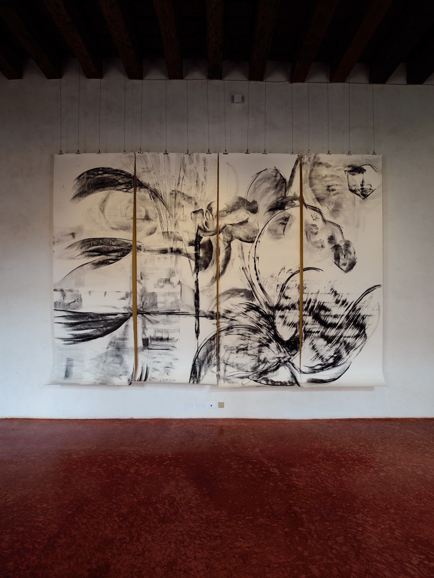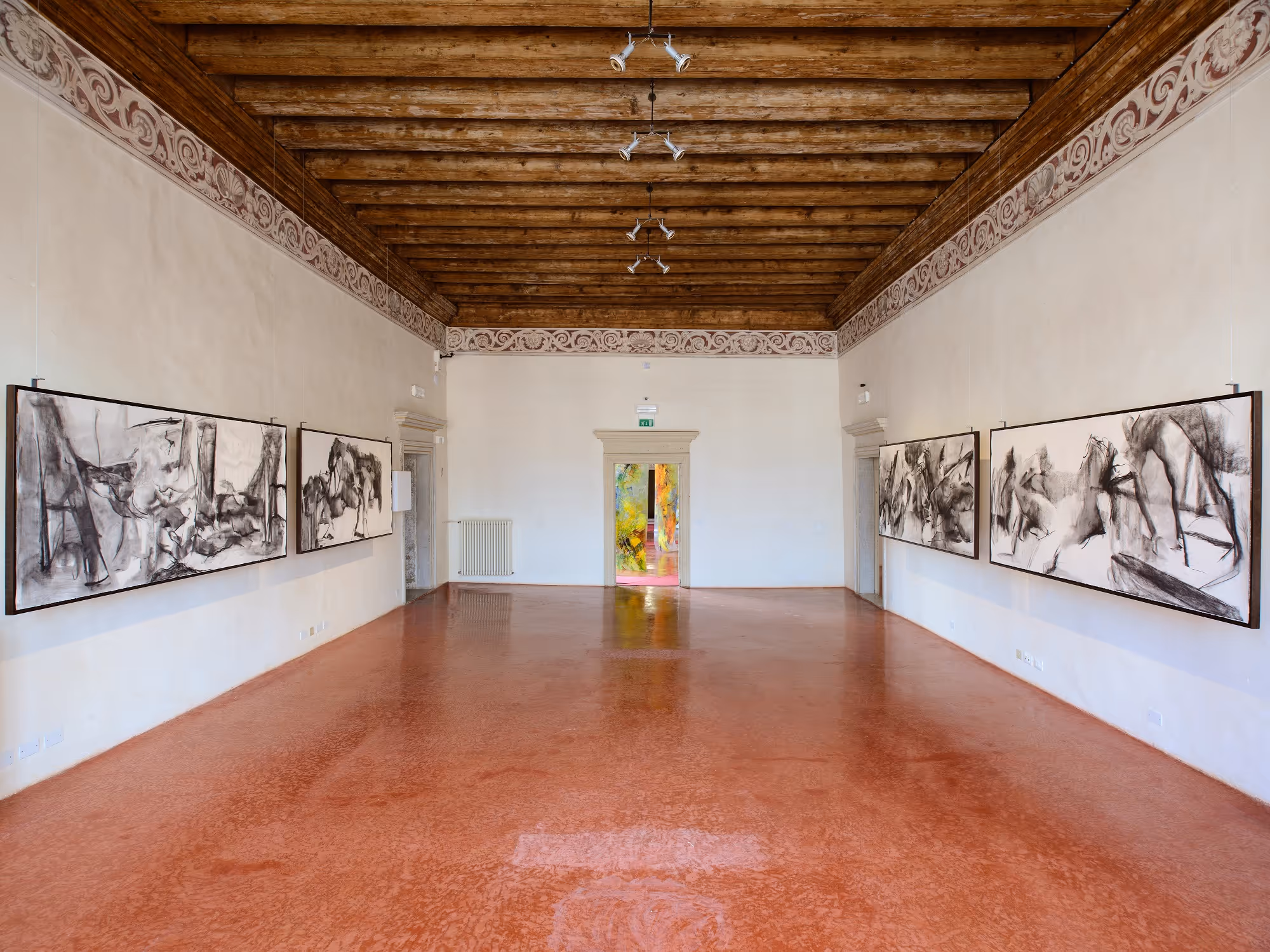 The exhibition 'Evocative Surfaces' was a site specific installation by the artist Beverly Barkat. Curated by Sally Haftel-Naveh, the exhibition comprising of works that include large-format paintings and drawings alongside site-specific installation work, was housed in different stanzas of the Museo di Palazzo Grimani’s second floor.