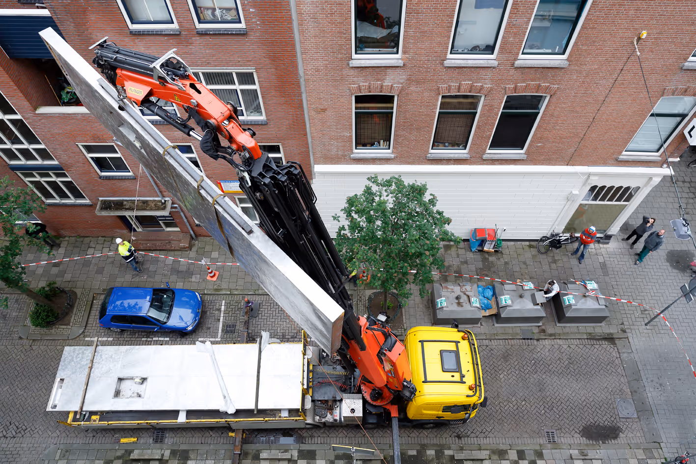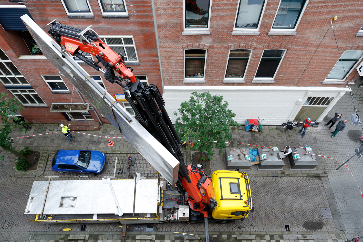 With no concrete date set, the sculpture was now presented immobilised and in parts, awaiting its return to the public space. Bik Van der Pol produced a newspaper-format publication titled Up Close, with background information and archive material about Rickey's sculpture.