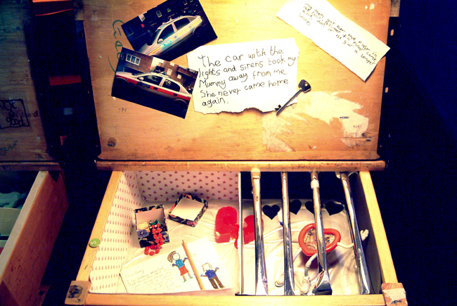 In 2005, the Shrinking Childhoods exhibition was composed of the works of over 1000 children, aged between four and twenty, who attended a number of workshops over the summer, organised by Kids Company, in collaboration with Tate Modern. The work they produced was exhibited in various Portocabins situated on the South Lawn, in front of Tate Modern. The creations displayed aimed to express the experiences and everyday struggles of these children, coming from a background of violence and poverty. The rooms inside the Portocabins included the hellish recreation of a crack house, with an unmade bed and an ignored child in the corner, as well as tables filled with 'brains', made out of resin and plastic. These brains showed the children's deepest fears left in their heads after years and years of abuse, from a black scorpion and a gun with the word 'kill' on it to severed wires labelled 'love'. Shrinking Childhoods was an exhibit simultaneously filled with hope and despair.