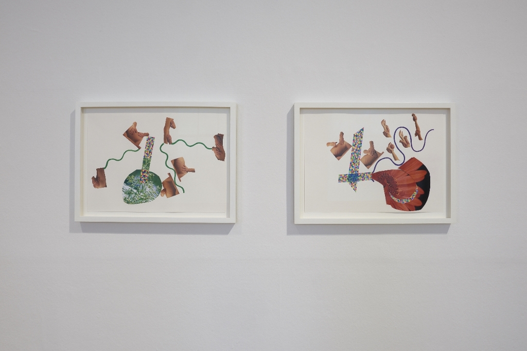 The resulting installation comprised a single channel video, printed paper, 11 collages, and performance. The series of works entitled 'A hoarding of greenery'(2017) are rich with excess, while the 'Peyote Dreaming'series (2017) contain delicate prisms suggestive of visionary effects. Such dreamlike associations are also suggested in the short, looped video, 'Orchids'(2017). Here, Street exploits a sensual play between vocal sounds and moving images. On specific dates throughout the exhibition, Street staged a spoken-word performance, 'Your mind'(2017). Finally, the printed text piece 'Comfort and crisis'(2017), featuring different forms of writing, brings together the imagery and ideas found throughout Street’s installation.