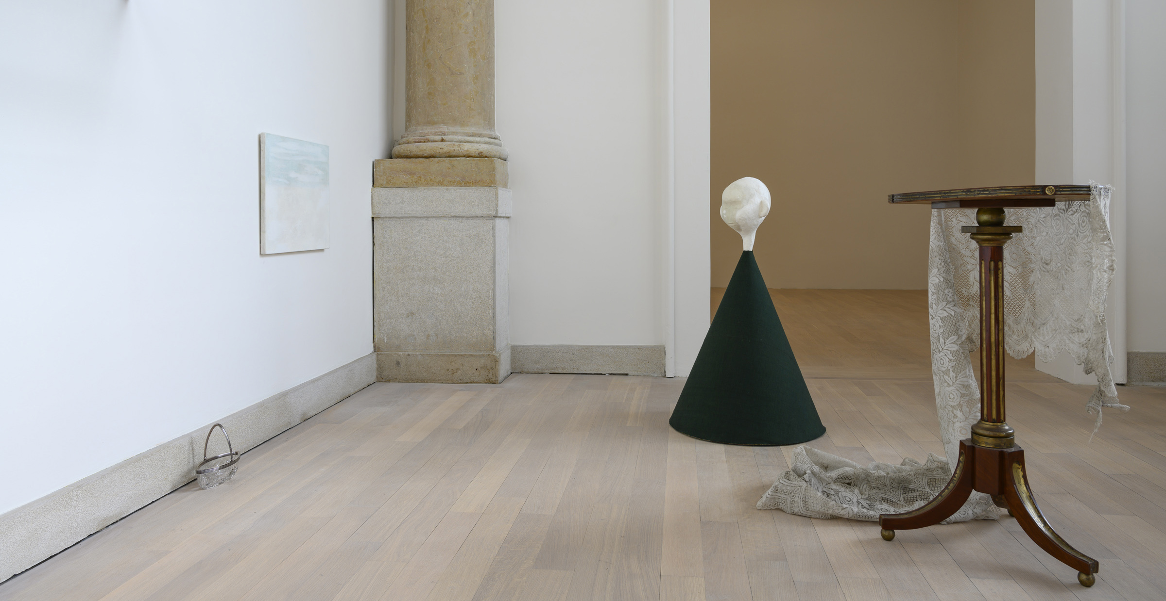 Through the measured process of creating her works, Wilkes experiments with all kinds of media and materials, and collects treasures and ingredients. Production-or what we see in the end is the accumulation of all of these constituent parts. Her work recalls inchoate visions of interiors and places of loss and meditates on the nature of love and the coexistence of life and death. Her work also shows the disappearance and dematerialisation of life and the absence and anonymity of the author. Her works, which are all Untitled, render us all non-initiates; together we have equal capacity.