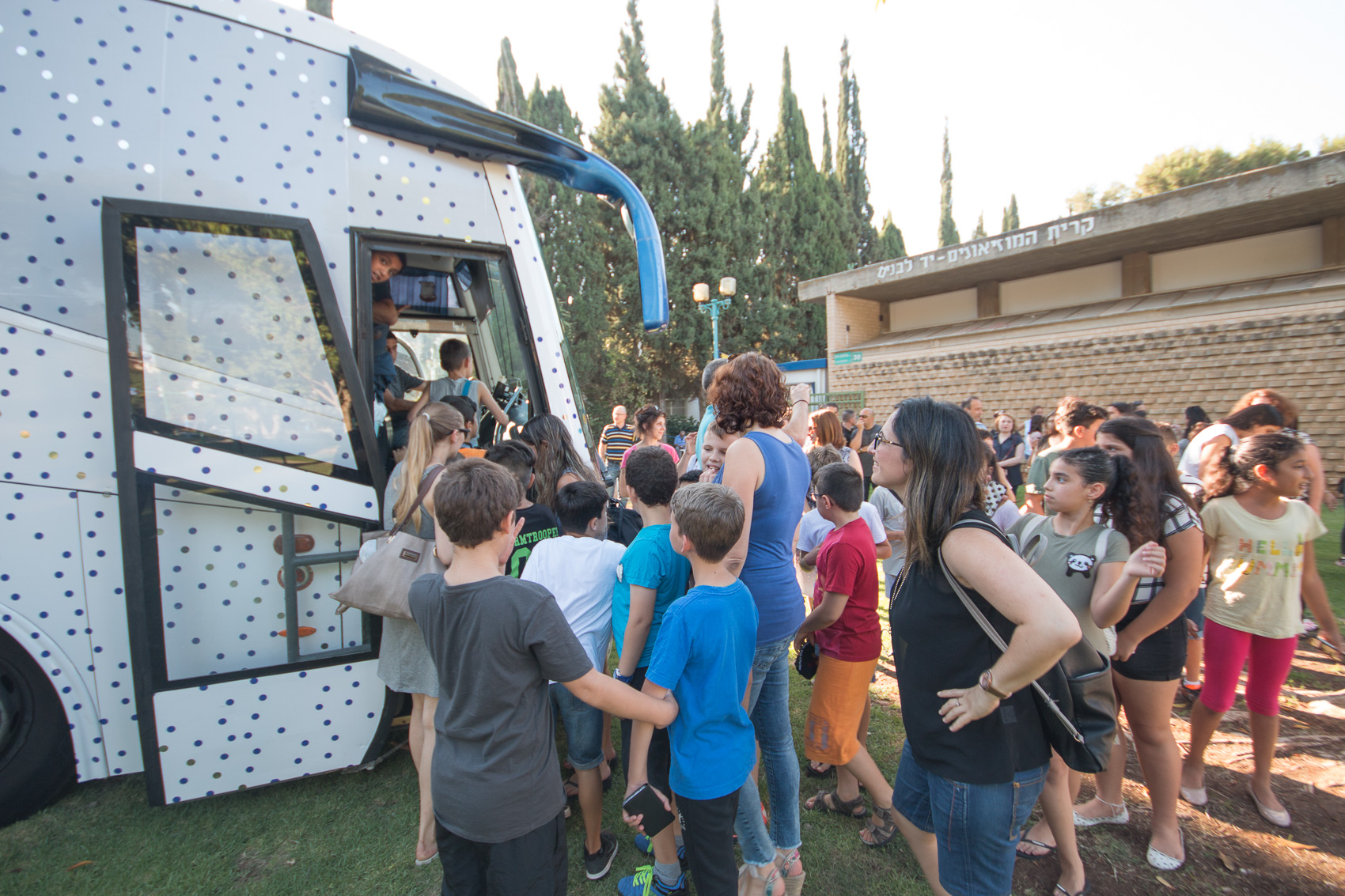 The museum collaborated with neighborhood associations around the city of Petach Tikva in order to bring families with the ArtBus – a travelling piece of art commissioned to the artist Charles Avery.
