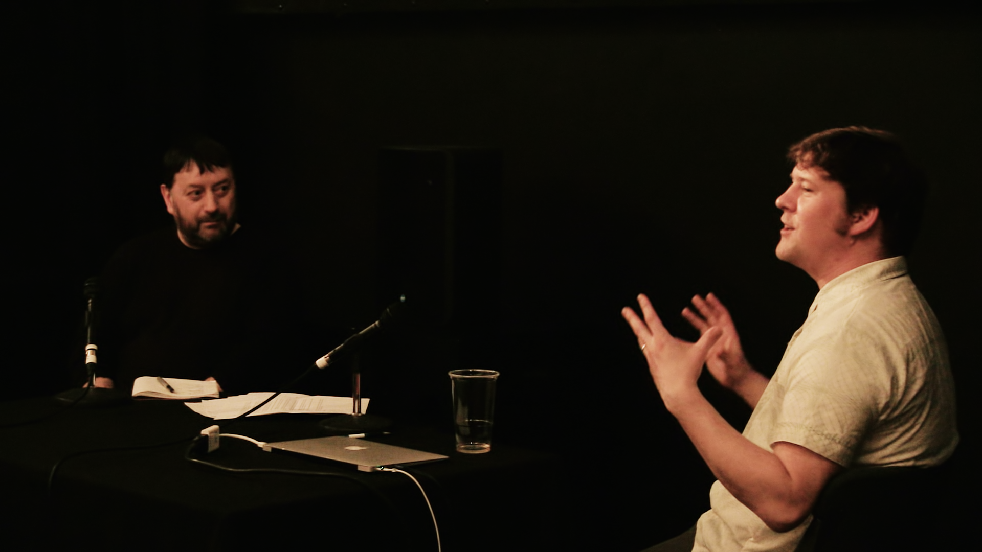 For the third Eavesdropper evening, Rob Churm spoke about his ongoing project, 'Exhaustion Hook'. He performed a reading from the Acknowledgements page of this work-in-progress comic, followed by an informal and circuitous Q&A with Francis McKee, covering a multitude of subjects from ‘deep nonsense’ and deserts, to hallucinations and Christian Bale.