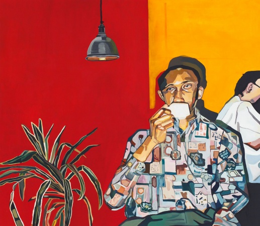 - Shezad Dawood, Wolf Panel V, 2013, acrylic on vintage textile.