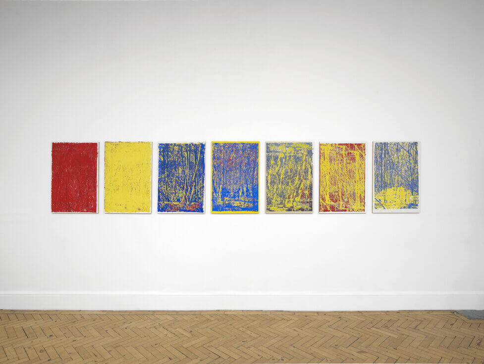 Part of his installation for Camden Arts Centre re-used an idea originated in a work by Angus Fairhurst, Underdone / Overdone Paintings (1998) where he allowed the audience to play the drums while looking at his paintings. Mirza exhibited a number of these paintings as well as a drum kit as part of his exhibition in order to honour Fairhurst’s original intention for the work.