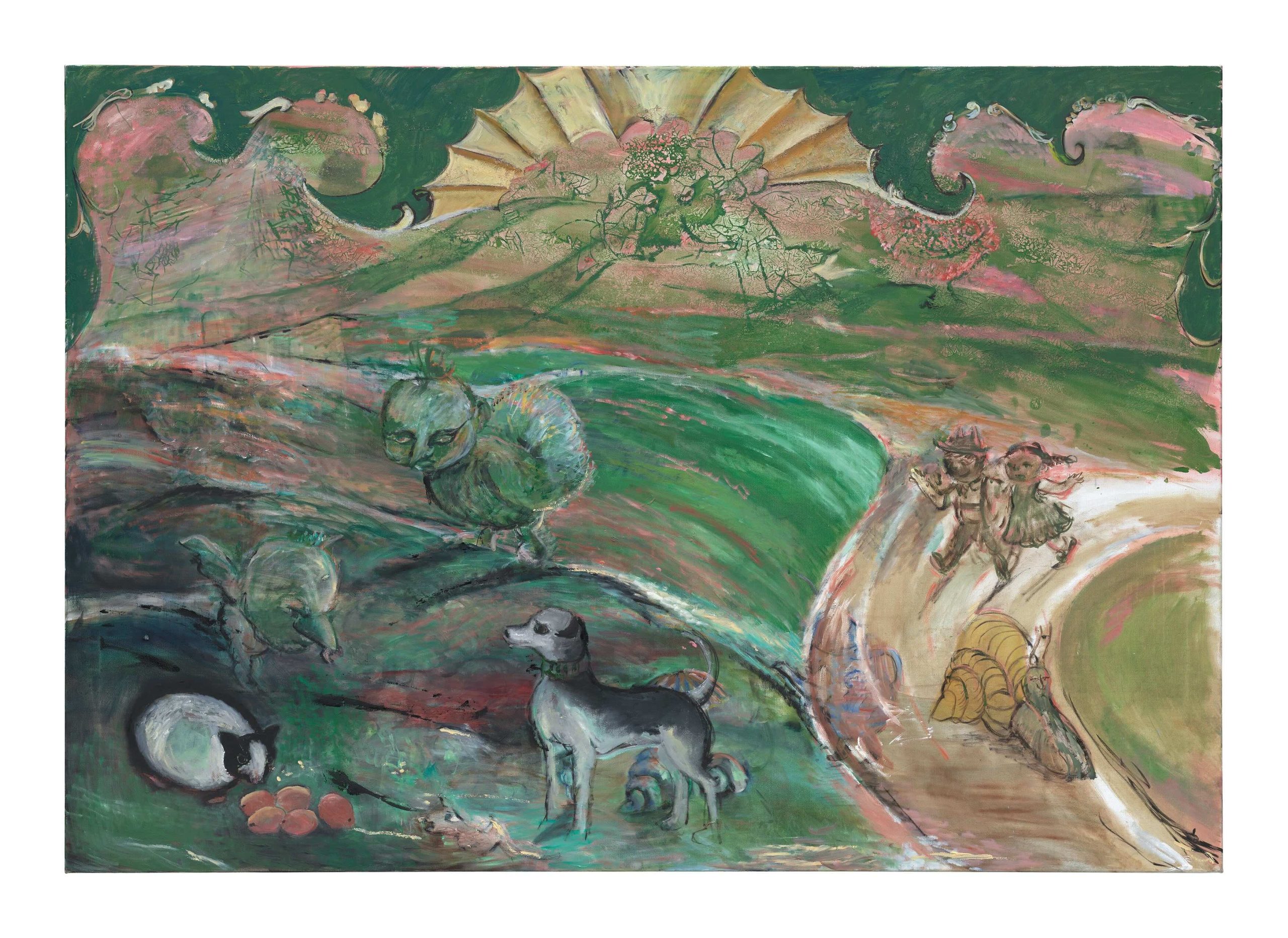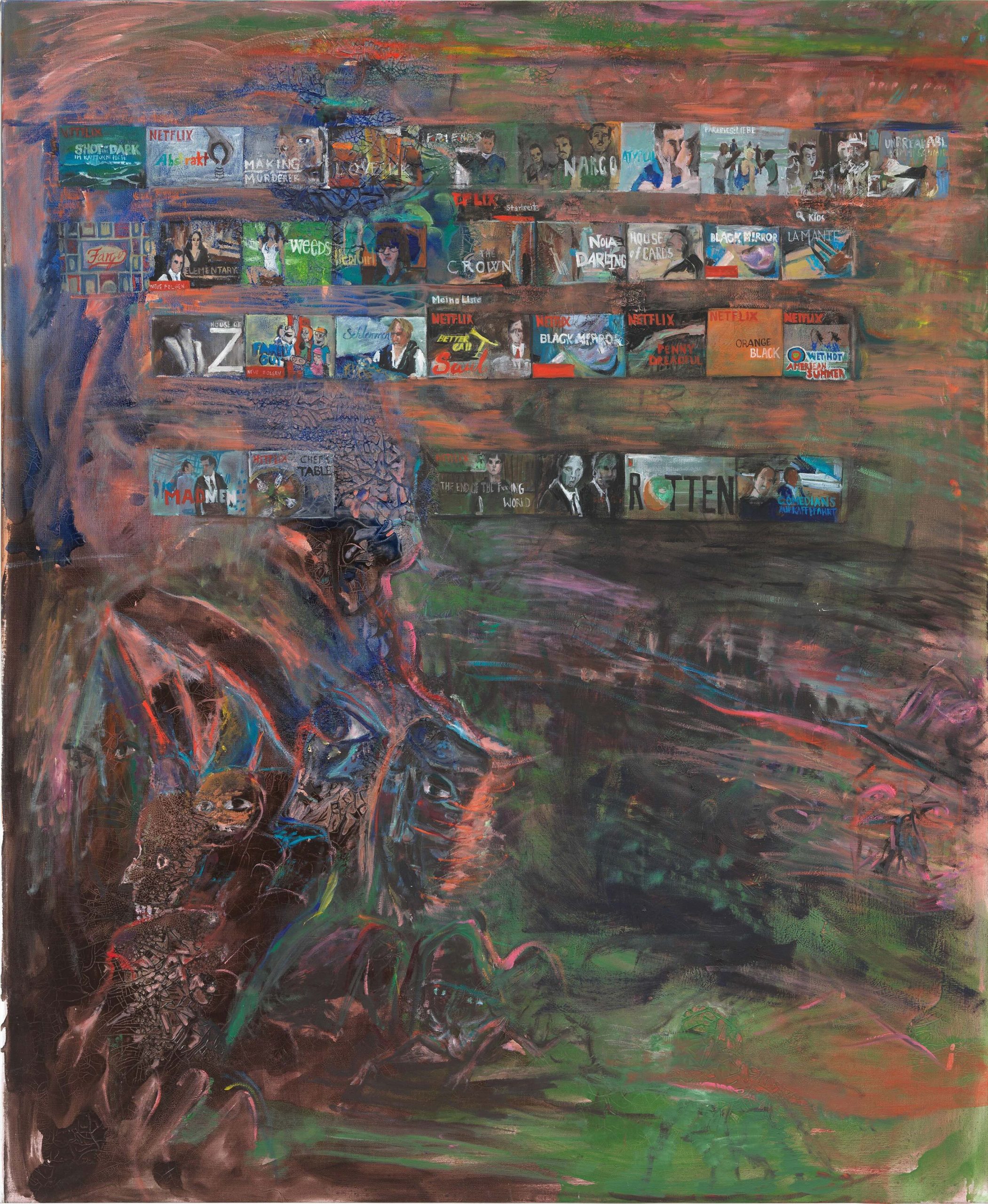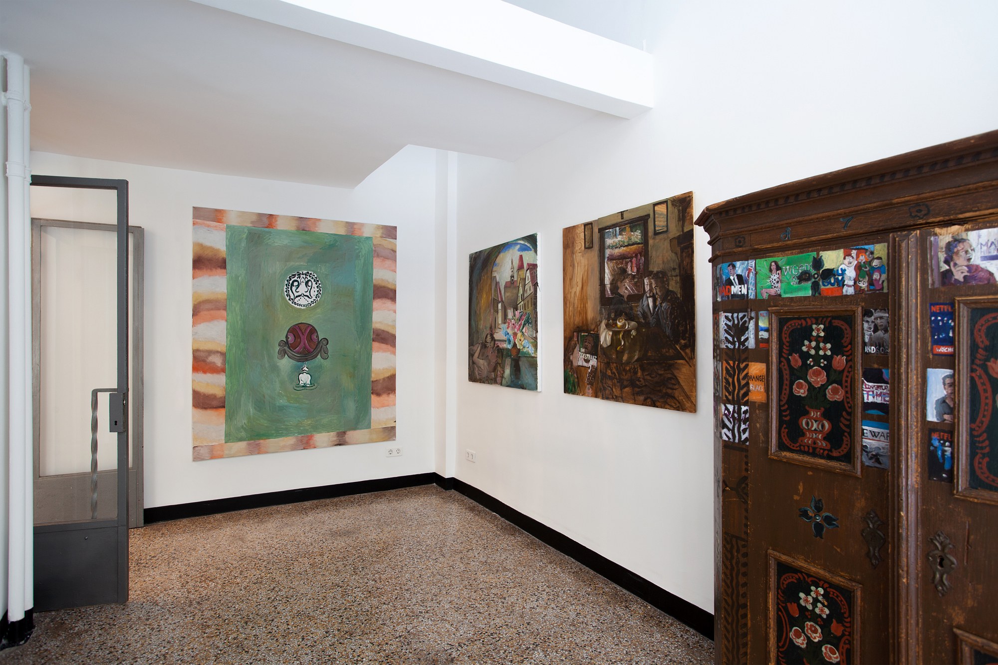 Boundaries between personal experience and shared social anxieties, self and introject, real and imaginary time and space, explode in the work of von Wulffen who seems to mine the register of the unconscious. However, unlike the psychoanalytic subject’s unconscious whose fantasies about time and space are not in real time and space, here we encounter the paradox of simultaneity: childhood memories, the history of painting, scenes from Netflix series, ice-cream advertisements, cats, Bavarian landscapes, lovers, dogs, and interiors collapse on the surfaces the artist uses that include various materials from canvas, wood, and paper to pianos and found pieces of furniture such as antique cupboards, beds, sofas and school chairs.
