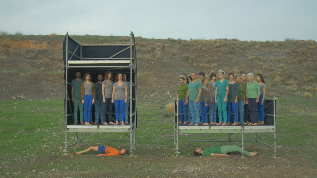 'Na'amah' combines a number of choreographic scenes into a complex narrative opus. The film is based on the play 'Tubal Cain' written by Nahum Benari, the artist's grandfather’s brother, who was an author and one of the founders of Kibbutz Ein Harod. The play is an interpretation of the biblical story of Tubal-Cain, the "father of metalsmiths", through which the author confronts issues of community, creative powers, hubris, sin, guilt and punishment. One of the characters in the play is Tubal-Cain’s sister, Naamah, a mute gleaner. Hilla Ben Ari makes the character of Naamah a central key to her work’s meaning, and seeks to read the play through a gender prism and to expand the critical perspectives implicit in it.