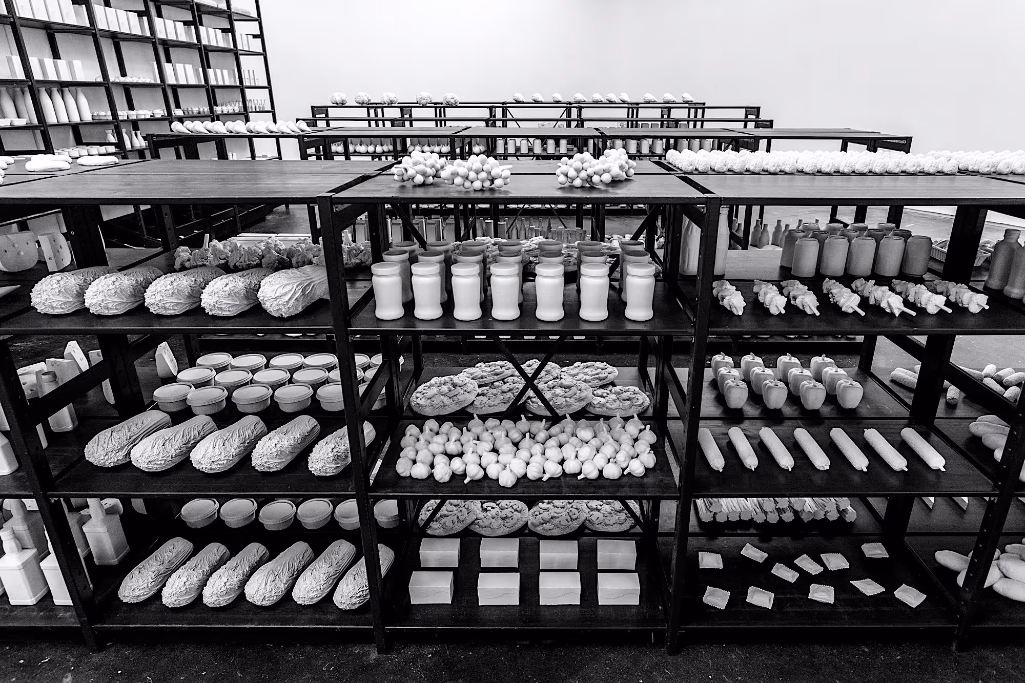 In 2014 Outset Netherlands supported the production of Itamar Gilboa’s installation 'Food Chain Project'. Realising his eating habits had drastically changed after first moving to Amsterdam, visual artist Itamar Gilboa started to keep a diary of everything he consumed for the duration of one year. He transformed this diary into a sculpture installation. 'Food Chain Project', a pop-up supermarket that consisted of thousands of stark white sculptural groceries, representing his yearly consumption.