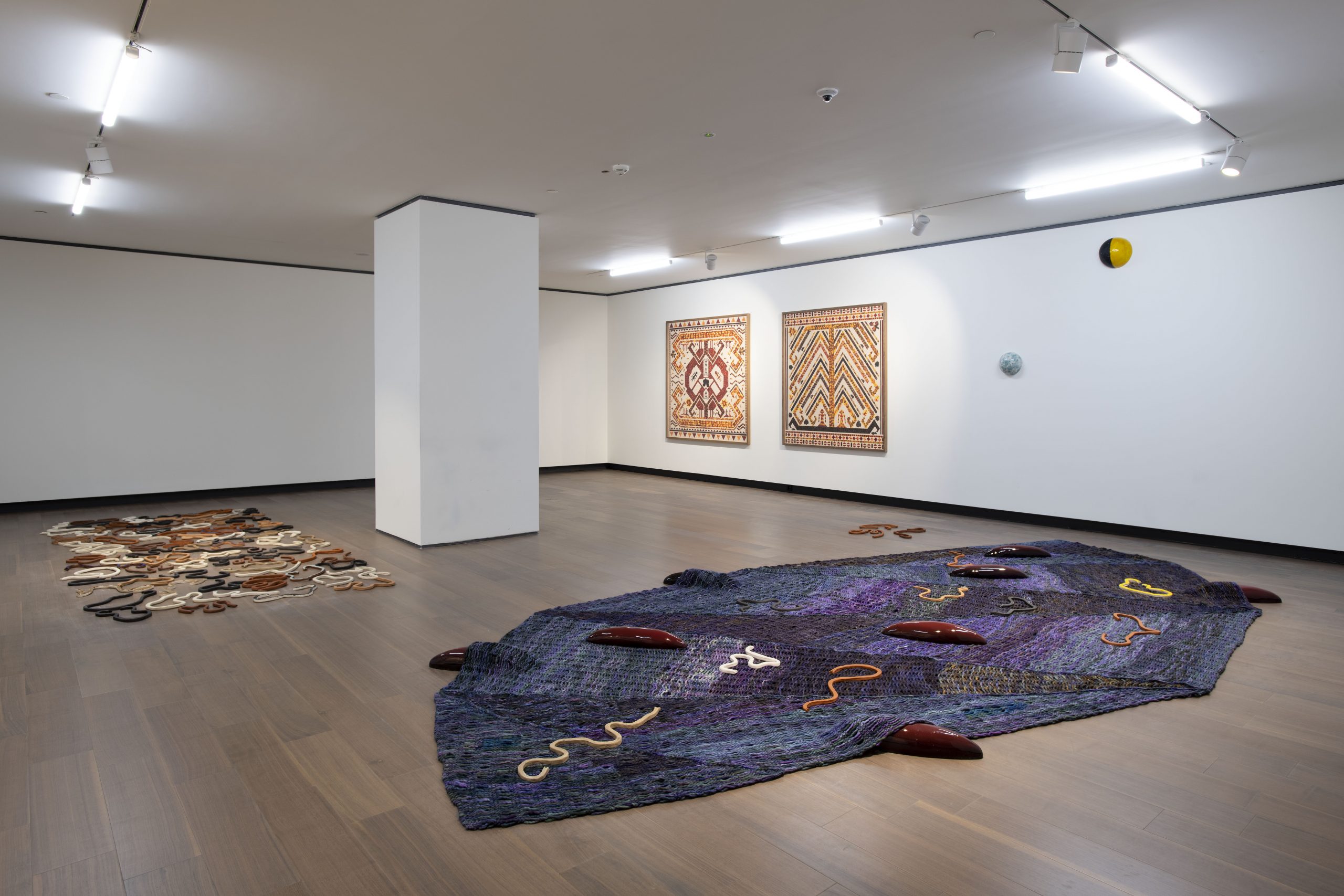 The works of Jennifer Tee (1973) respond to experiences of cultural hybridity, identity and language, and trade routes between people, commodities and objects from nature. Tee’s works in Istanbul took on the motif of tulips. The artist showed a series of collages made with pressed tulip petals, drawing from motifs of souls continuing on to new lives taken from tampan and palepai textiles from Sumatra. She has also carried out research in a museum garden in the Netherlands called Hortus Bulborum and has collaborated with Jane Lewty on an eco-poetry performance involving several dancers. Alongside these works, Tee has developed a knitted floor piece on which visitors could recline during invited moments.