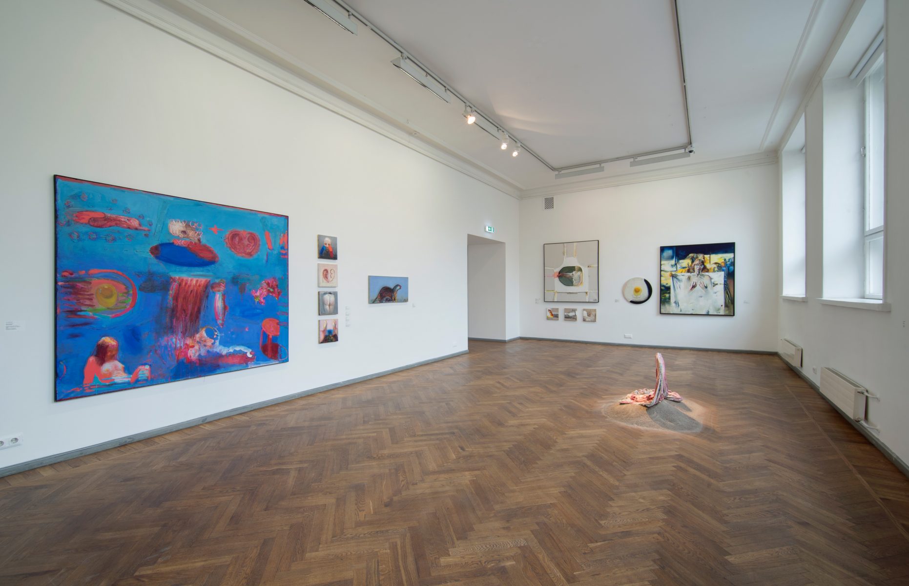 'Beauty and the Beast' was a dialogue between generations and mediums that brought together Tiit Pääsuke (b. 1941, Põltsamaa), the grand old man of Estonian painting, and Kris Lemsalu (b. 1985, Tallinn), a contemporary artist educated as a ceramicist. The basis of this exhibition was the independence and originality of these two artists and their art practice. The aim was not to exhibit them in opposition to each other, but rather bring out the connections they have – the visual intensity of colours, the recurrence of animals and women as subjects.