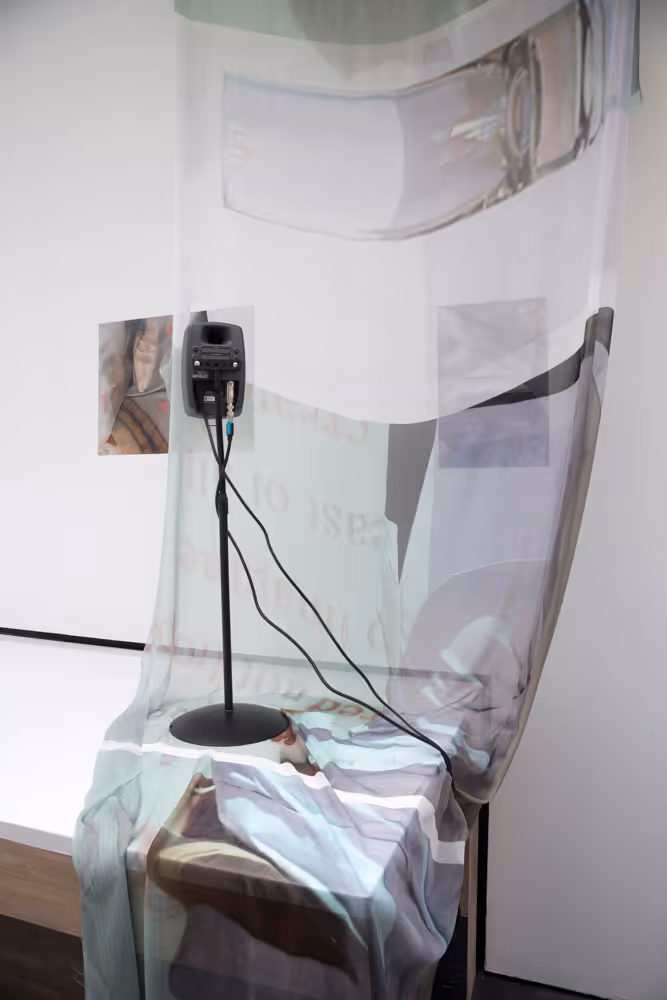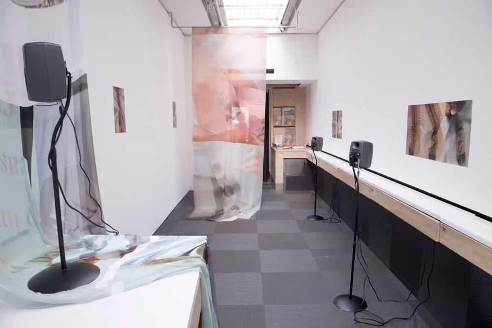 The lending library in Glasgow Women’s Library consists entirely of donations from its users and supporters, and eschews the Dewey Decimal System. Printy Currie responded intuitively to this unusual system, transcribing by hand the titles of all the books visible on the shelves in the library, before recording a variety of voices reading sections of this text. In this way, she created a multifaceted found poem, as well as a form of audio tour of the library, which could be experienced outwith the space. The installation in the Travelling Gallery was interwoven with layered images of carefully selected objects from the library's archives, deepening Printy Currie's exploration of feminist self-organising, marginalised experiences, and the defining principles of a cultural archive.