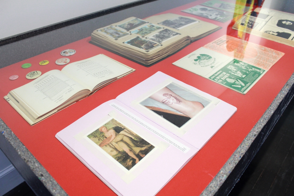 The resulting body of site-specific work for Glasgow Women's Library was entitled Bower of Bliss – a reference to the Mary Queen of Scots Bower at Chatsworth, where the anointed queen spent some of the fifteen years she was detained under the jurisdiction of Elizabeth I, and Linder shot her film. Both the flag and film featured a kind of collage of histories collected at Chatsworth and GWL's feminist and pop culture artefacts. This effect was amplified by the way in which the exhibition extended beyond the flag and film to incorporate an extraordinary launch event at sunrise; a specially commissioned herbal cordial by Bottle of Ginger; burning incense; displays of items from GWL's collection that influenced the work; a Spare Rib magazine reading corner; costumes made by Louise Gray for the film; and Linder's sketchbooks.