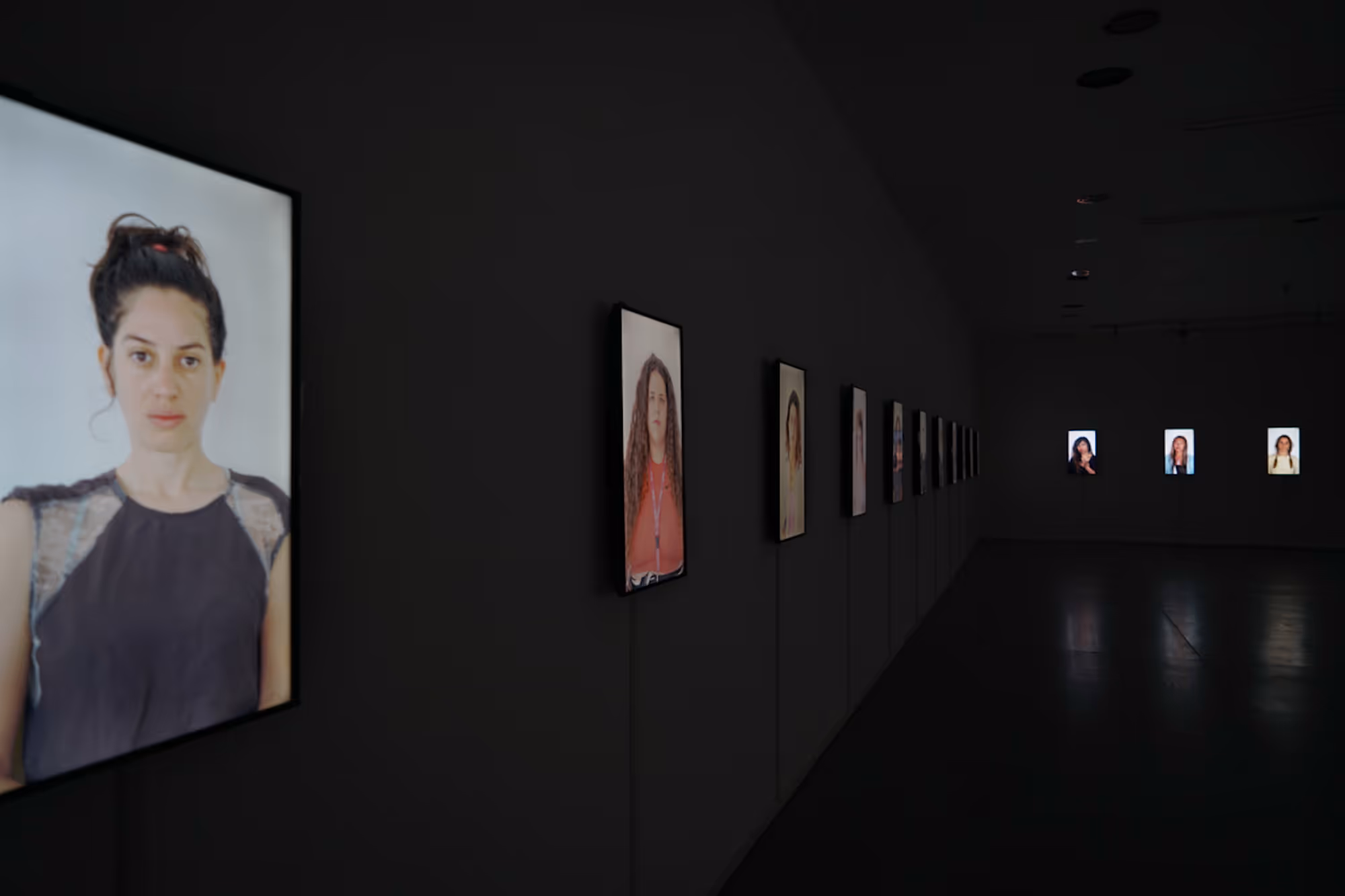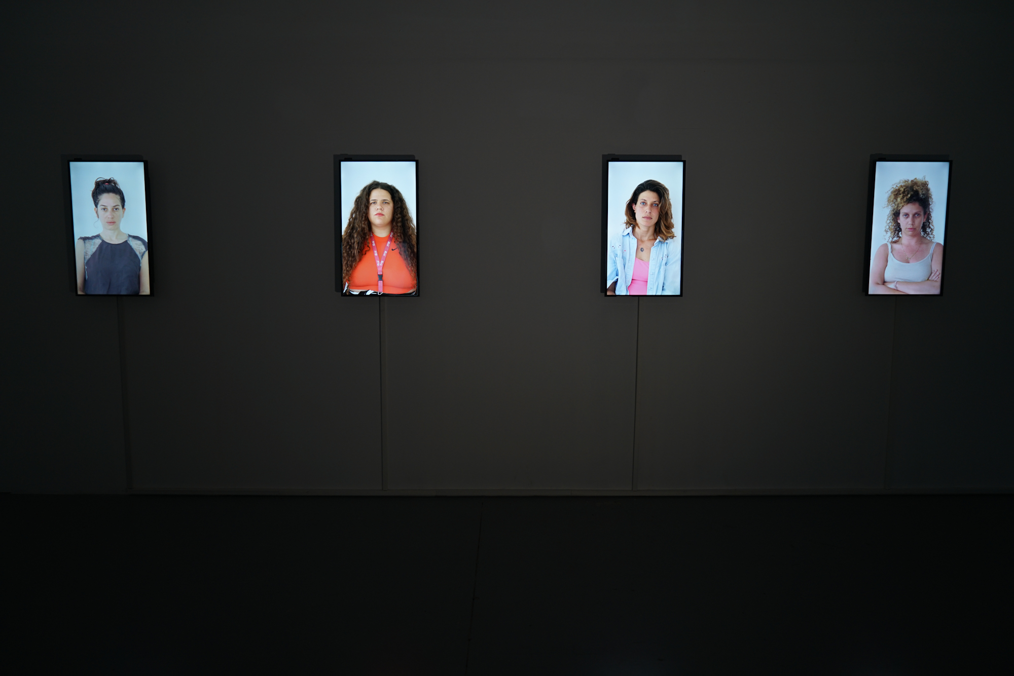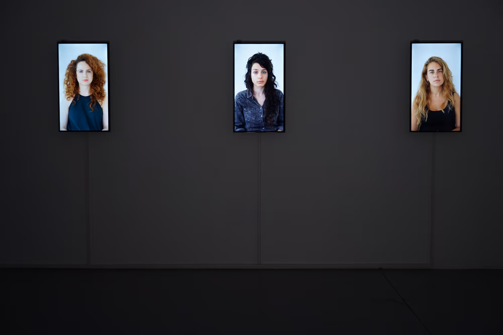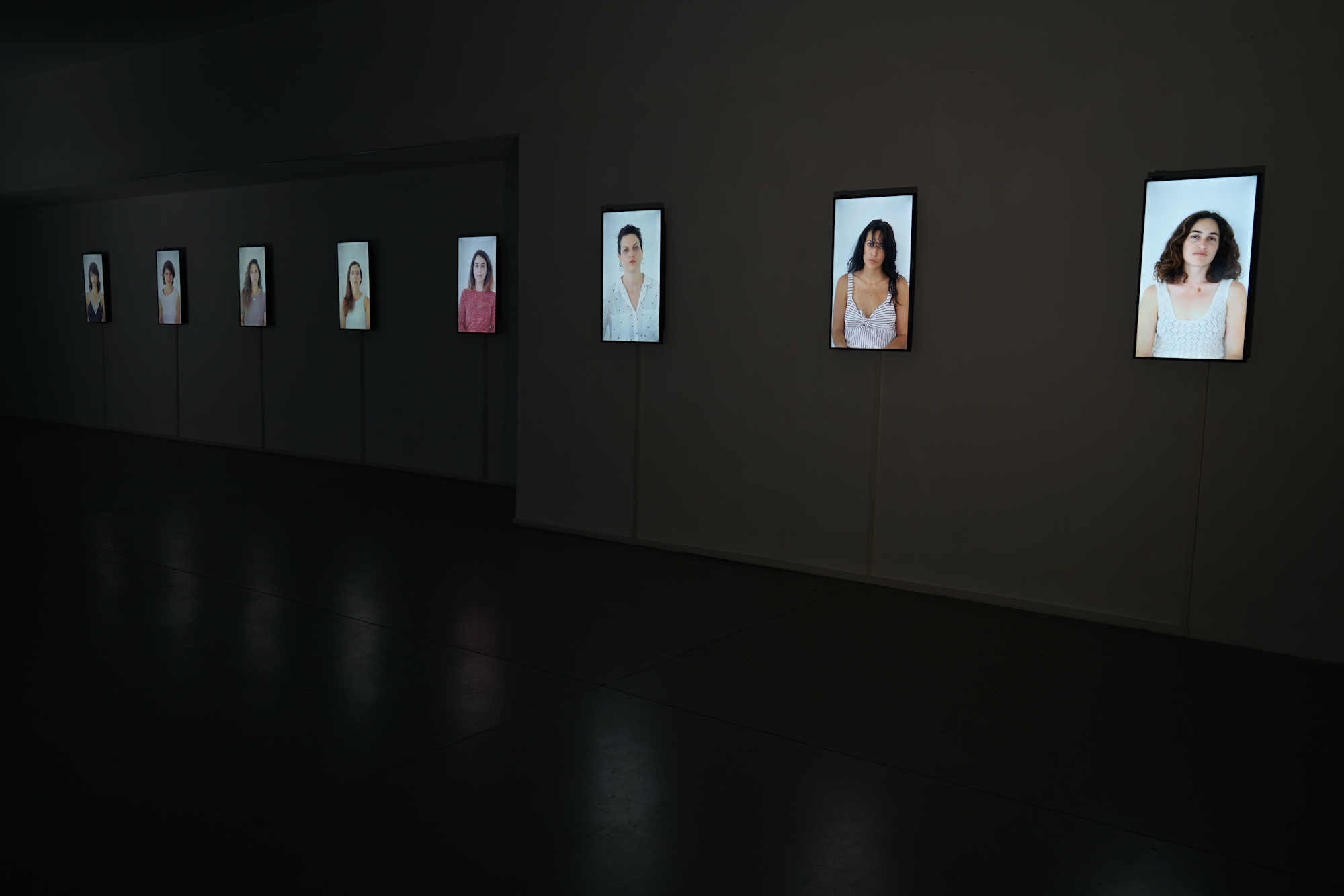 'Present Perfect' is a multi-channel video installation in which Smira documents women in their 30s, sitting silently facing the camera, attempting to fix their attention on it. There are no distractions from the subjects, who stand in the studio against a white background, filmed in close-up in a vertical format, as required by the "classical" portrait. Each woman is alone, facing the static gaze of the camera, cut off from the dizzying pace of life, in head-on confrontation with self, some from a place of seeking, while others reflect acceptance.