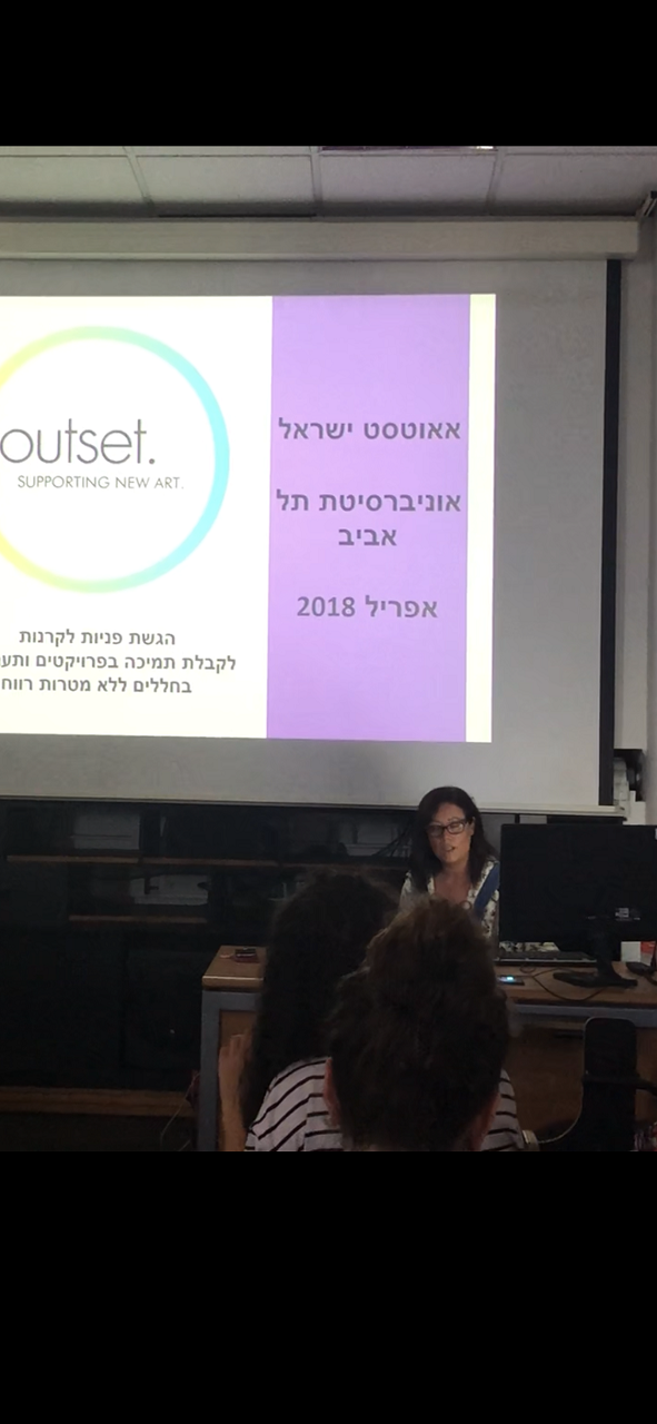 These presentations focused on Outset Contemporary Art Fund's activities within the Israeli and international art world, explaining which challenges we analyse in the contemporary field and wish to address in our work. The lectures offered an inside glimpse into Outset Israel and International activities, explaining how Outset and other similar funds work, how can artists obtain support for their projects, how to write artist statements, project proposals and more.