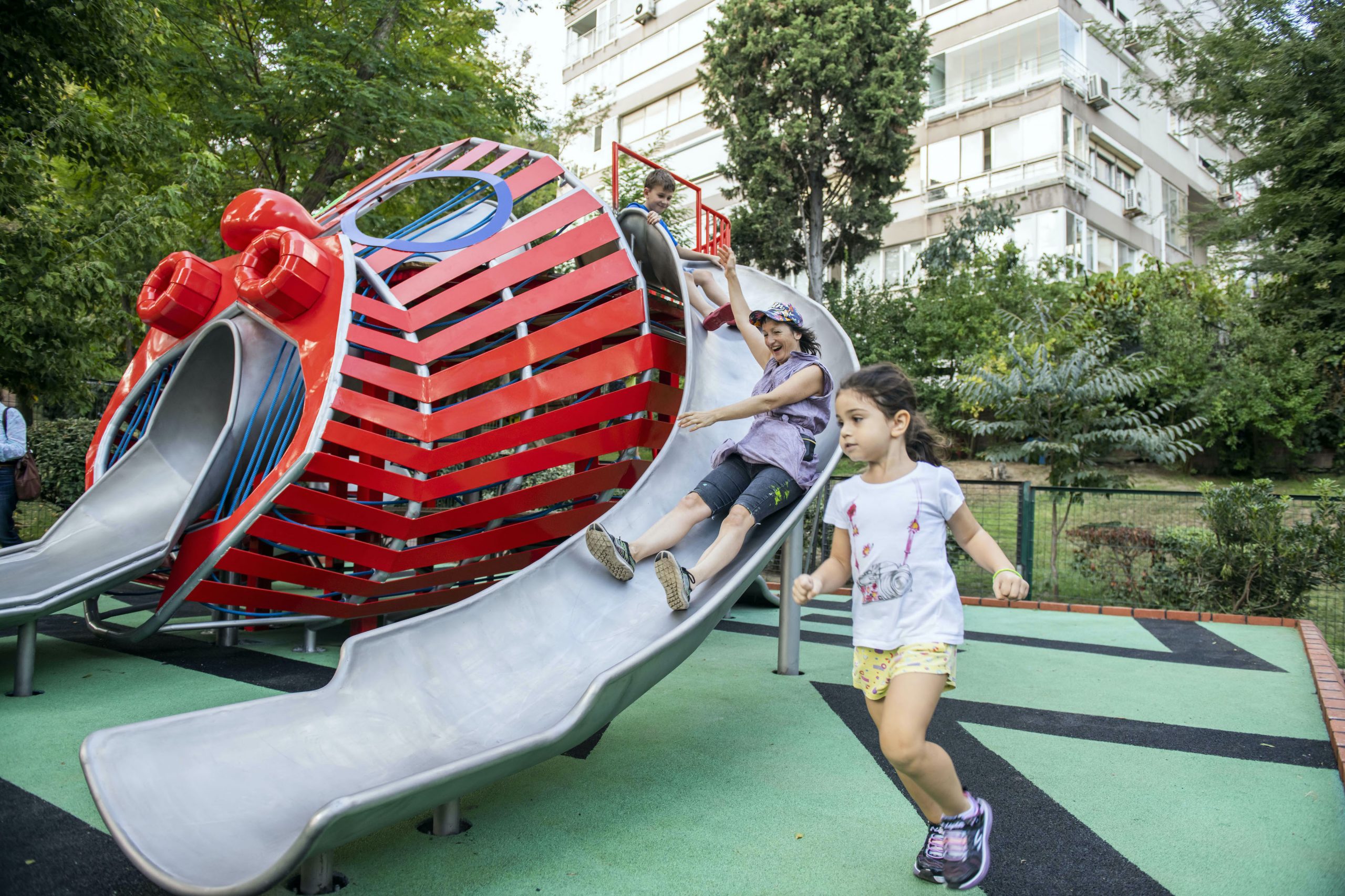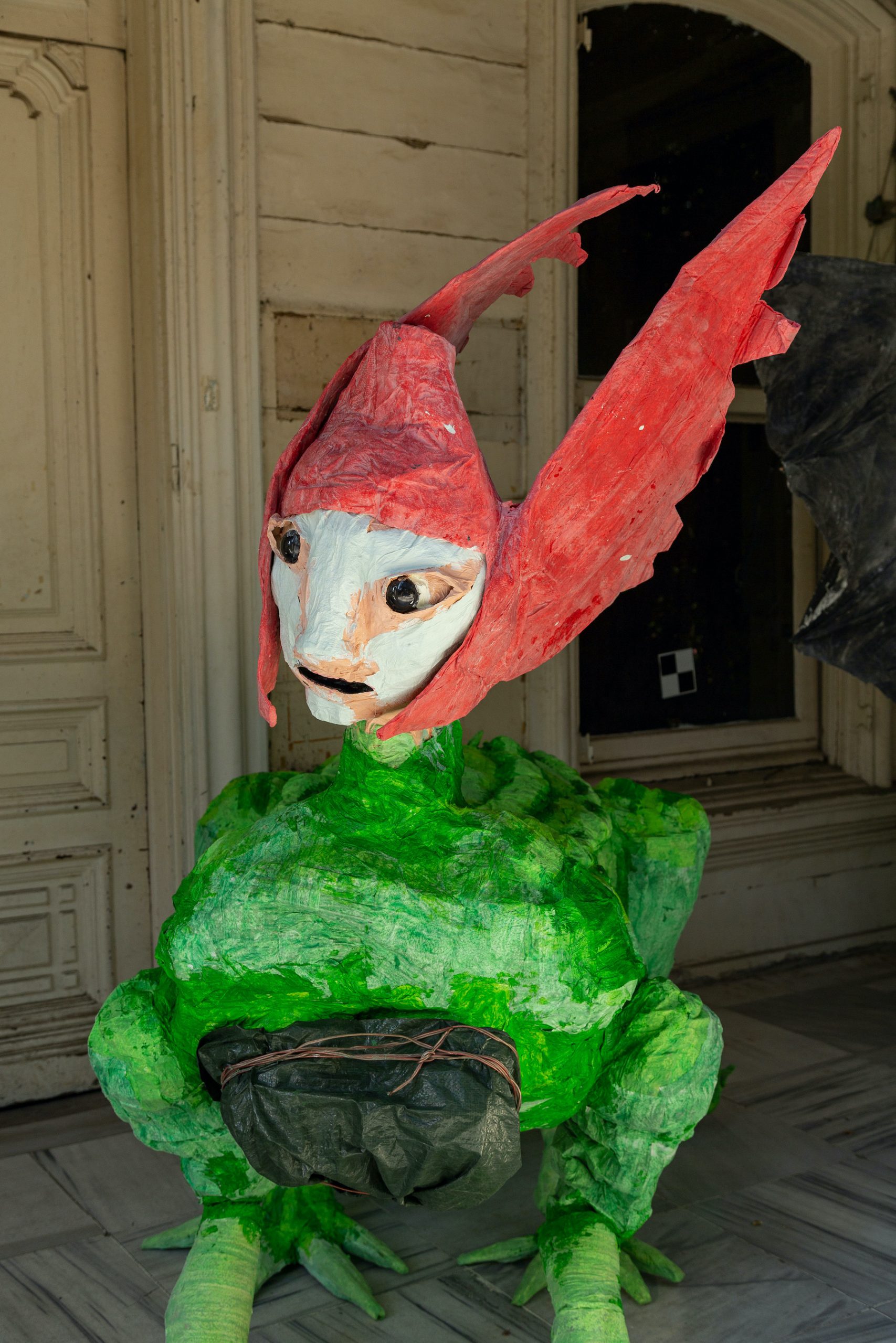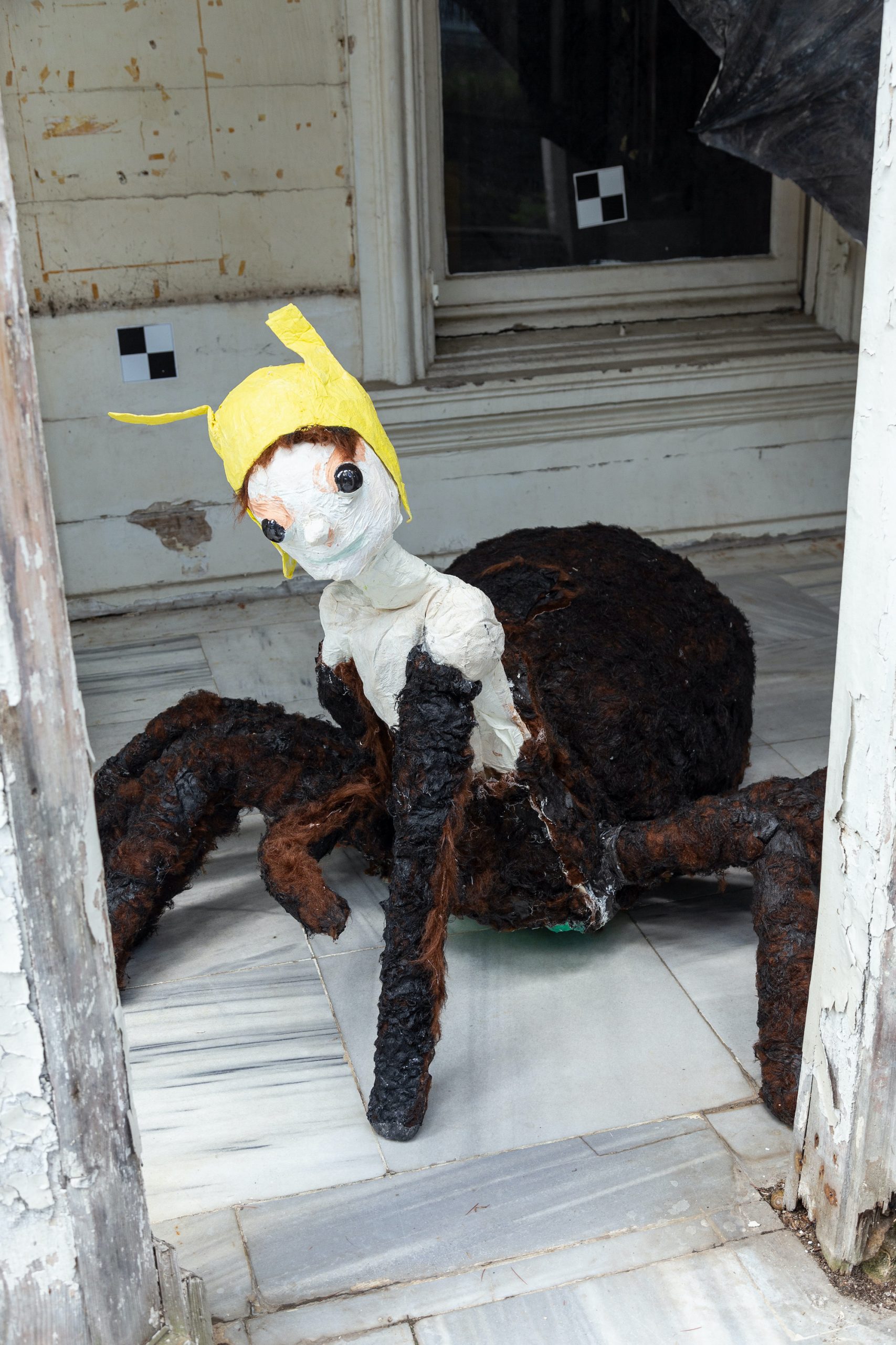 According to the Biennial’s curator, Nicolas Bourriaud, each venue that hosts the biennial represented a different facet of the exhibition. Chetwynd’s work was exhibited at Büyükada, the largest of the Princes’ Islands on the Marmara Sea. Requiring a journey by boat from the City Centre, the exhibitions at Büyükada allowed visitors to embrace a slower rhythm. Her temporary, otherworldly sculptures, Hybrid Creatures (2019), were exhibited in the garden of the Hacopulo Mansion, where their uncanny nature echoed that of the grand but dilapidated building. Her second work, Gorgon’s Head Playground (2019) was permanently installed at Maçka Sanat Park. This sculptural play equipment was inspired by the stray cats of Istanbul and the Gardens of Bomarzo in central Italy, and is an interactive installation enjoyed by the hundreds of children who visit the park each day.