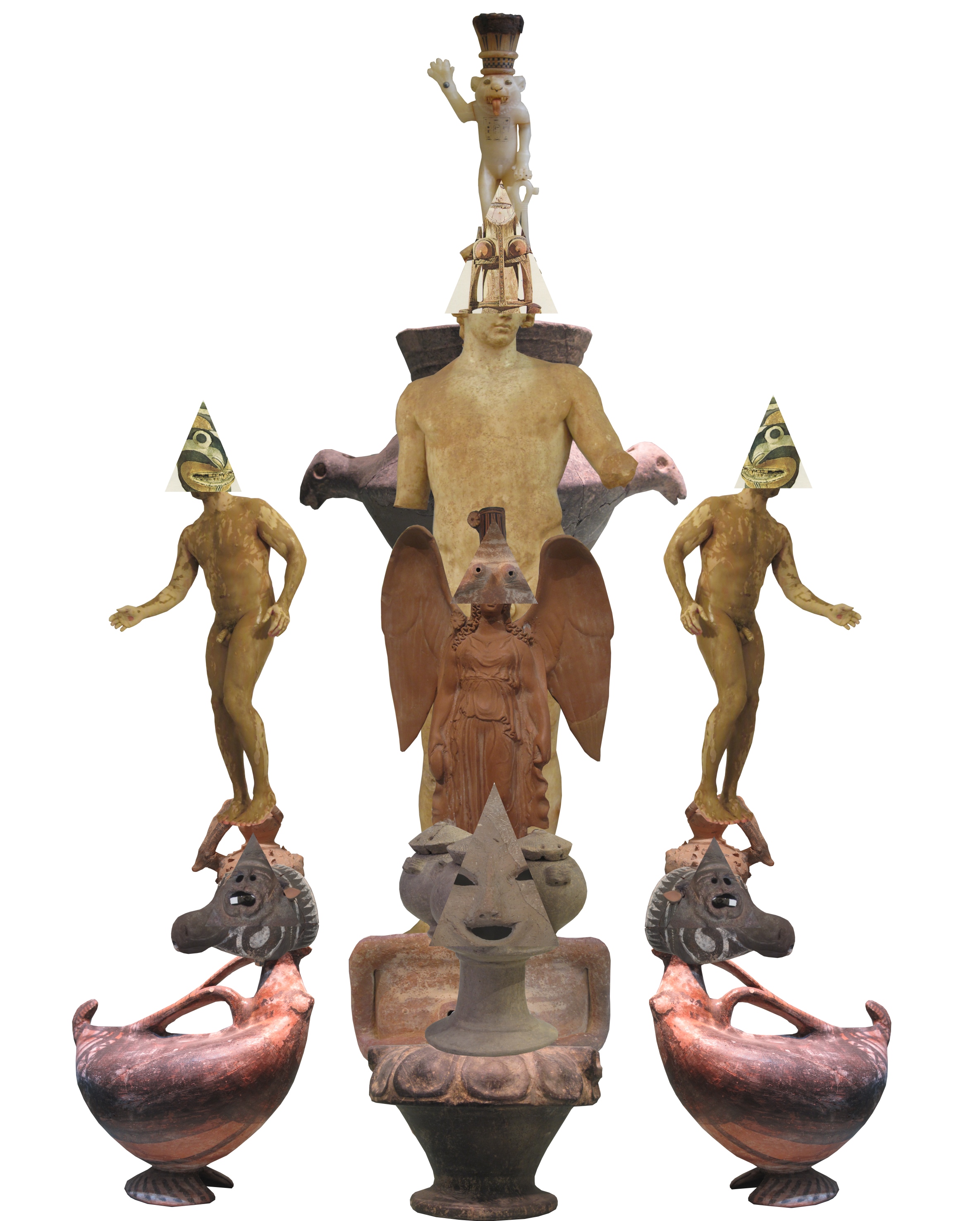 In this exhibition, taking place at the Archaeological Museum of Chora in Andros, with the support of Outset Greece, the artist developed a range of materials and visual expressions that were dispersed all over the museum. Collages, three-dimensional assemblages, pottery, performance on the opening day and its projection at video room of the museum, found their place among the original archaeological finds, as well as in the building shell of this significant architectural structure. HOPE attempted to become a body within a body. His visual material acts as a symbolic language or manifesto that helps us understand how to communicate with the creations of the past. Space is created and shaped in relation to other bodies, but first and foremost by our own body.