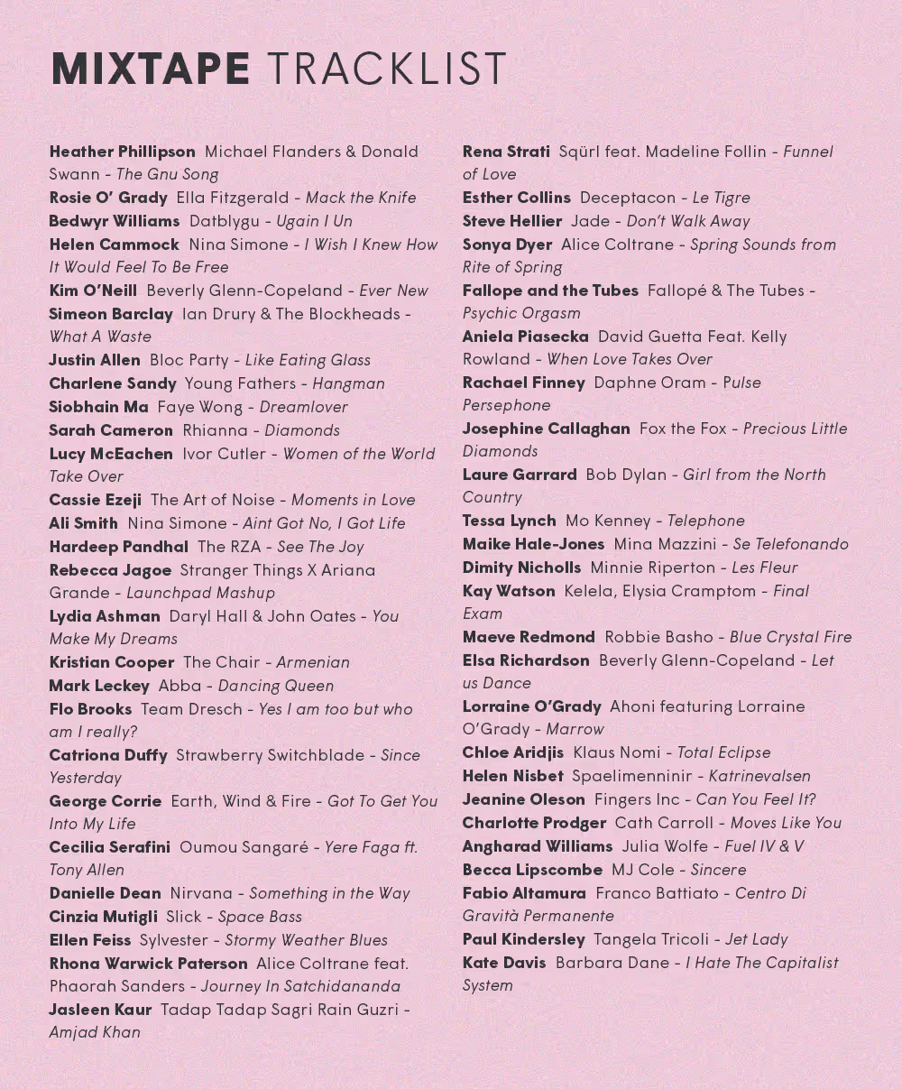 Helen Nisbet's exhibition programme included: the public programme Houses are really Bodies; Mark Leckey: Affect Bridge Age Regression; The Landscape - Josephine Callaghan, Sarah Cameron; Helen Cammock: Shouting in Whispers; Flo Brooks: Is Now a Good Time?; the public programme The Driver's Seat; Hardeep Pandhal: Liar Hydrant; Landed: Denielle Dean, Janine Oleson. To mark the end of the 2017-18 season, Helen compiled A Mixtape of music chosen by artists and collaborators involved in her programme.