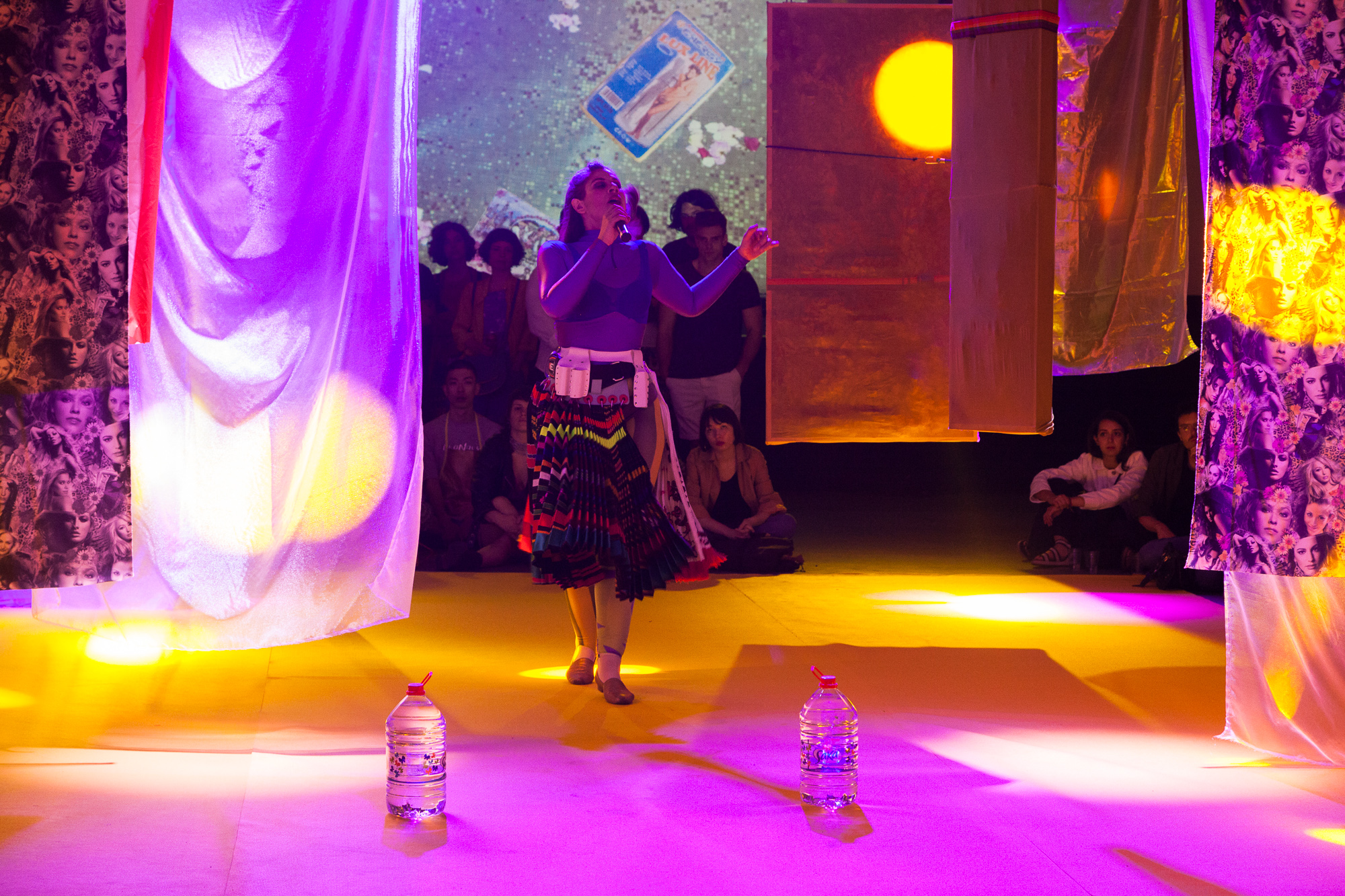 Gery Georgieva (b. 1986, Varna, Bulgaria), known for her performative self-presentational works interwoven with elements of folklore, pop, tradition and kitsch, has been commissioned to produce a new performance, 'At The Source' to debut during the fourth edition of Block Universe (2018) at Oval Space, East London. For this unique project, Georgieva’s largest to date, the artists continued her relationship to body and identity politics through musical collaboration at the intersection of pop and folk.