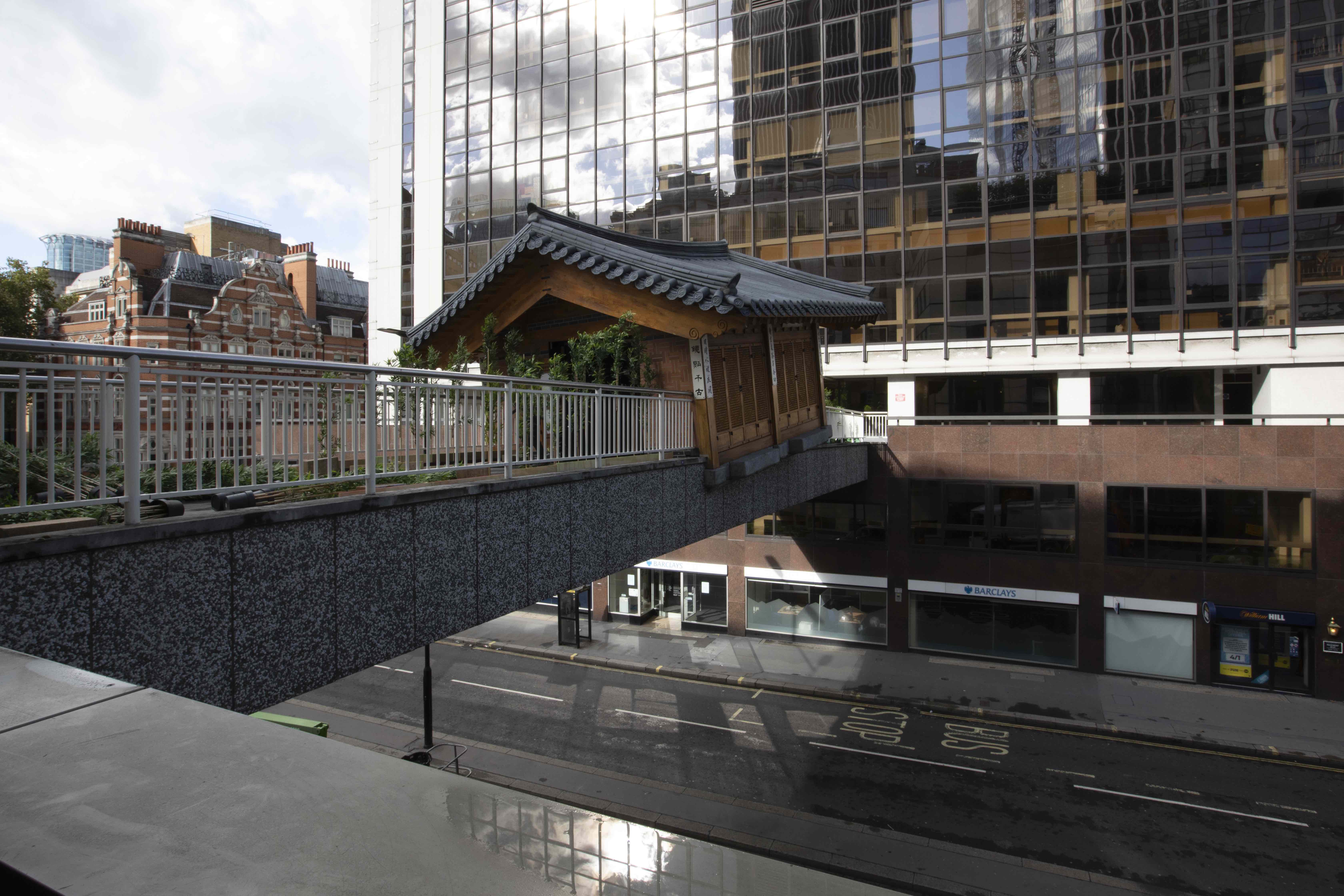 Outset has supported an ambitious new installation by Korean artist Do Ho Suh on a footbridge above Wormwood Street – one of the busiest roads in the City of London, near Liverpool Street Station. Invited by Art Night and Sculpture in the City to respond to the migrant history of the East End and the City of London, Suh has created Bridging Home, London, a replica of a traditional Korean house, his childhood home, and surrounding bamboo garden, which appears to have ‘fallen’ onto the Wormwood Street footbridge.