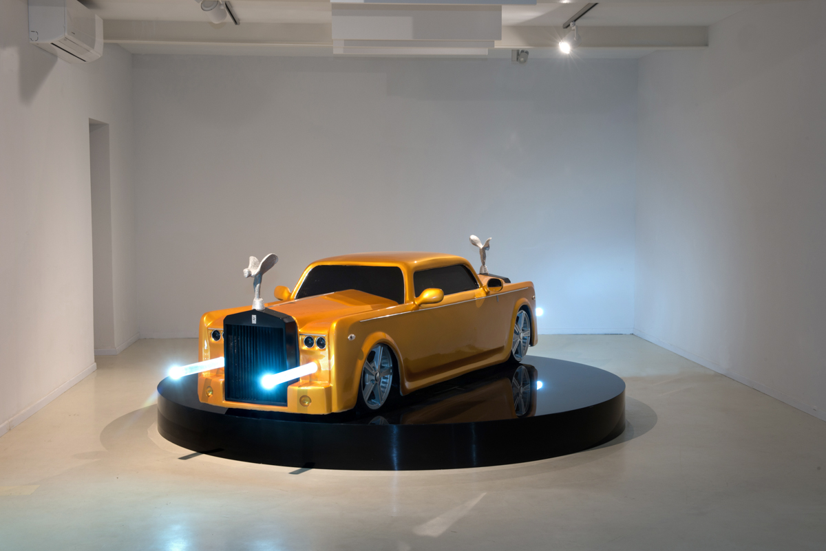 The exhibition 'Shufuni Ya Nas (Look at Me)' presented two new projects by artists Meir Tati and Eyal Assulin, each presenting two luxury cars: a BMW and Rolls Royce, both of which have long transcended their existence as simply means of transportation, and been elevated to the status of prestigious brands laden with symbolic meaning. A cultural world has evolved around each of these luxury or "classic" cars, a world saturated with knowledge, imagery, habits and terminology. All these create a kind of map, a technical and metaphorical layout of a desired car, further reinforcing the illusionary relationship between merchandise and its value. In other words, cars are never just cars. Whether cheap or expensive, whether two-seater or four, whether sports car or sedan, cars are always more than just cars. They are a means that allows you to assess, define, or articulate the consumer experience, to manifest motion. Moreover, they are a tool that simultaneously relies on status and gender-based stratification while perpetuating them.
