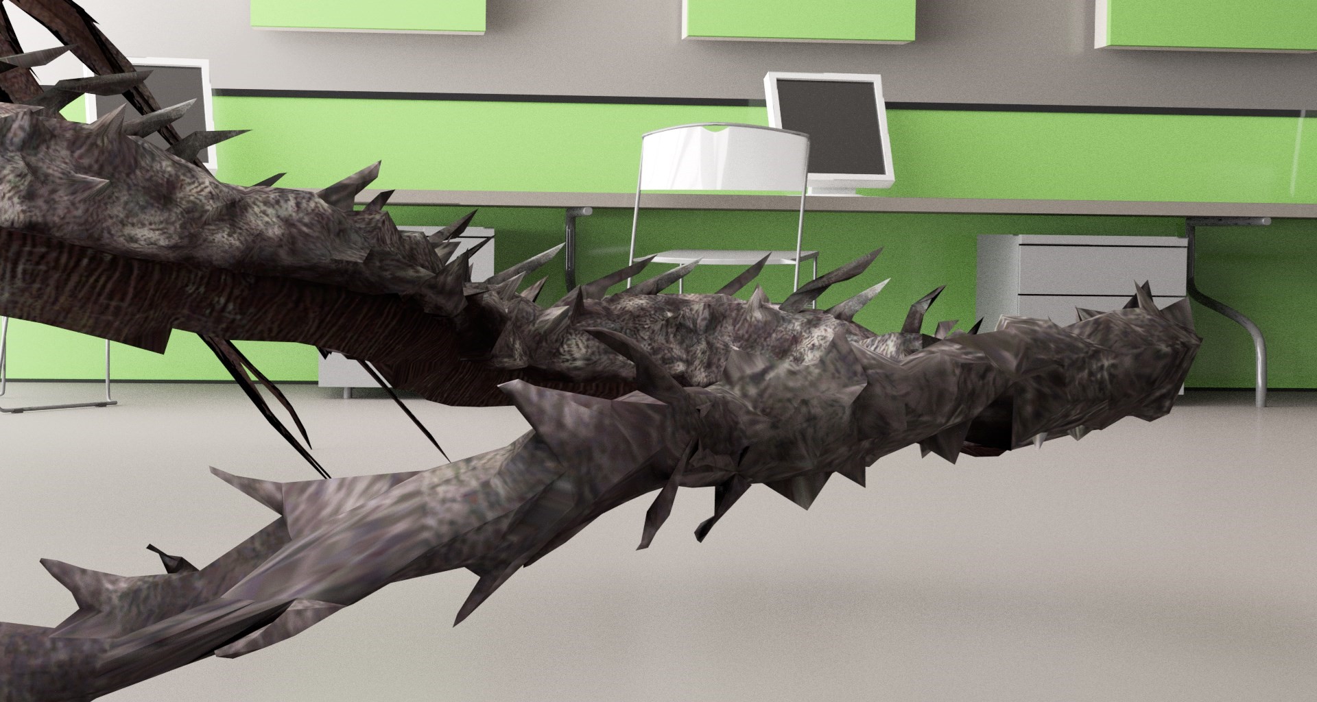 One of the more interactive works at the exhibition came from Tomasz Kobialka; hardly surprising considering that Kobialka has a professional background in gaming and digital design. He presented a video work, installed in a green-screen space with a low ceiling, lending itself to an immersive experience for the viewer. "Central to my practice is a critical interest in technology," the artist explains. "I often use the devices of technological progress in order to examine the cultural conditions which contribute to technological production."